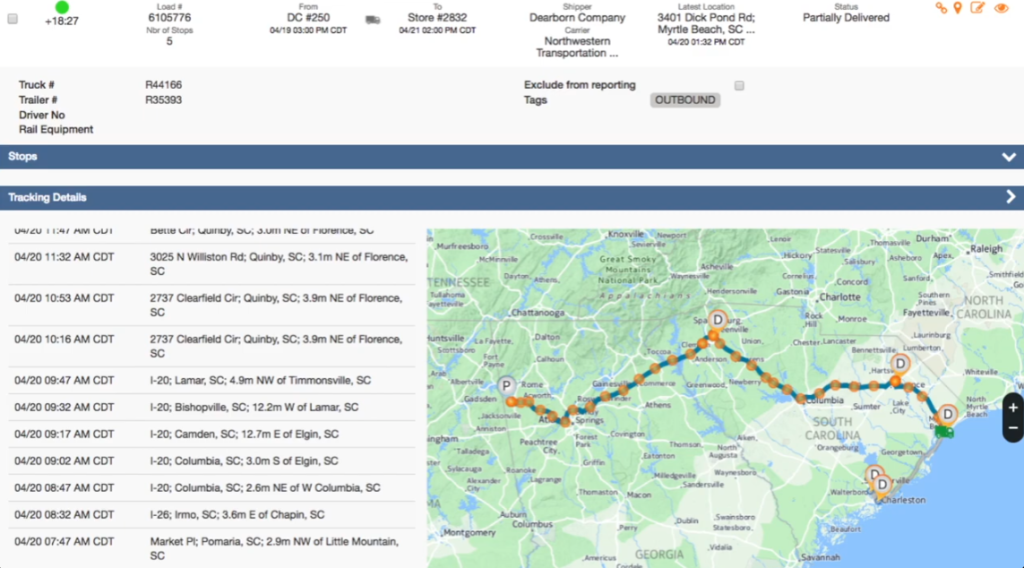 Seguimiento por GPS con IASí, es su función principal y más avanzada. FourKites agrega datos de una vasta red de dispositivos GPS/ELD, telemática y otras fuentes. Su IA patentada (Dynamic ETA®) procesa estos datos junto con más de 150 factores dinámicos (tráfico, clima, tiempo de espera) para generar los ETAs más precisos del mercado. La IA no solo muestra dónde está un camión, sino que predice con una precisión 6 veces mayor que la del transportista cuándo llegará.